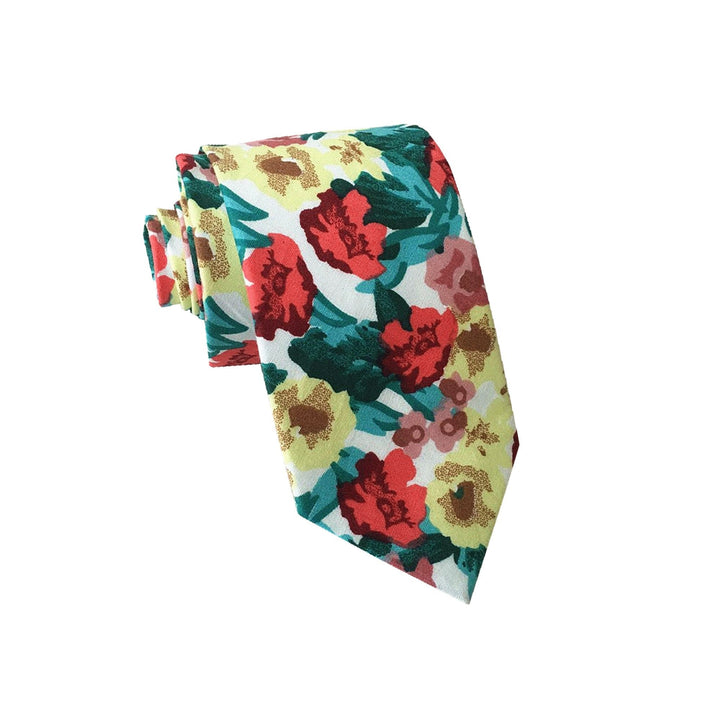 Maroon Yellow with Turquoise Floral Necktie
